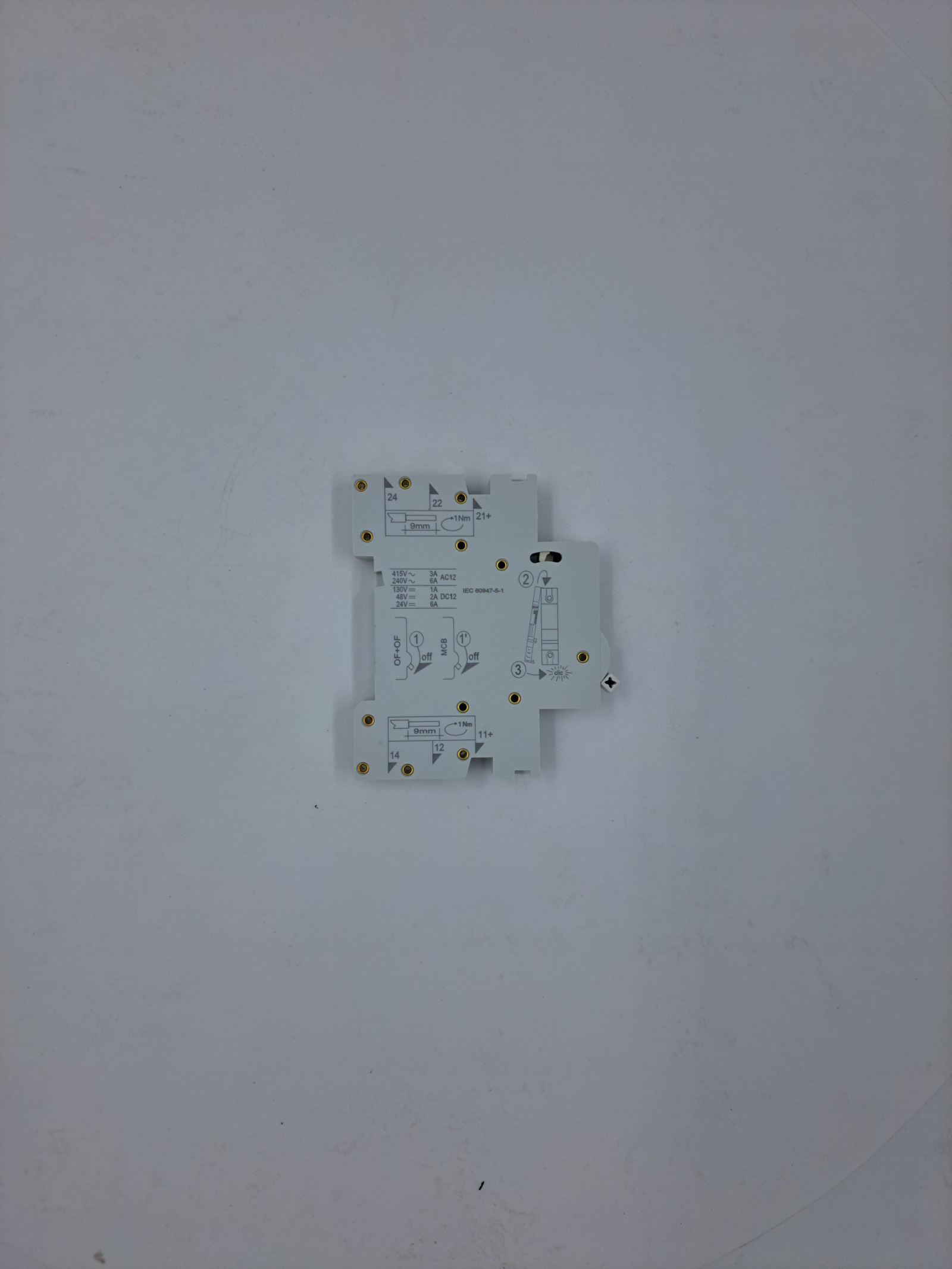 Дополнительный контакт и дополнительный контакт OF+OF совмещенные два дополнительных контакта в один корпус и предназначены для получения информации о состоянии автоматического выключателя. Выполняет функцию контакта состояния автоматического выключателя: включен – выключен. Переключение контактов происходит, даже если рукоятка управления выключателя удерживается во взведенном положении. Содержит одну группу переключающих контактов.